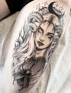 WHAT ARE YOUR FAVORITE SUBJECTS/STYLES TO TATTOO? I love but am not limited to doing colorful American traditional, traditional Japanese, and gothic blackwork. WHAT IS ONE THING YOU OWN THAT YOU SHOULD REALLY THROW OUT? A box of about 500 comic books. WHAT IS THE MOST TRIVIAL THING ABOUT WHICH YOU HAVE A STRONG OPINION? Banana and mayo sandwiches slap (it's a southern thing). WOULD YOU SURVIVE A ZOMBIE APOCALYPSE? I think I could survive for a handful of years until I deplete the earth of Baja blast. After that, what's the point? WHAT IS THE SCARIEST ANIMAL? Gotta be the drummer from The Muppets. WHAT DO YOU THINK HAPPENS WHEN WE DIE? You get eaten by your cat. WHAT IS YOUR FAVORITE SMELL? A tough battle between the lumber section of a Home Depot or the top of my Fiance's dumb little head. YOU GET ONE SONG TO LISTEN TO FOR THE REST OF YOUR LIFE. WHAT IS IT? Make Me Bad by Korn. WHAT WOULD BE THE FUNNIEST SUPERPOWER? The ability to effortlessly read any heavy metal album no matter how spiky the font. A STRANGER IS INHABITING YOUR BODY FOR THE DAY. WHAT ARE SOME TIPS YOU WOULD GIVE THEM? You'll get used to the tongue thing. IF YOU BECAME A GHOST TIED TO ONE LOCATION IN THE AFTERLIFE FOR ALL ETERNITY, WHERE WOULD YOU HAUNT? My Boogie van WHAT NUMBER AM I THINKING OF? I don't know, what number are you thinking of?